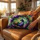 Stained Glass Peacock Floral Wreath Art Lumbar Cushion