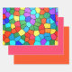 Colourful mosaic rainbow designed wrapping paper sheets using blue, green, yellow and purple.