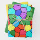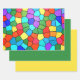 Colourful mosaic rainbow designed wrapping paper sheets using blue, green, yellow and purple.