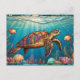Stained Glass Sea Turtle, Fish, Coral, Ocean Postcard