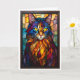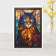 Stained Glass Style Charming Cat with Yellow Eyes Card