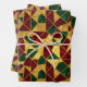 Stained Glass Style Christmas Red Green Gold Wrapping Paper Sheet