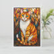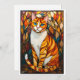 Stained Glass Style Orange Cat Blue Eyes Flat Card