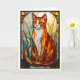 Stained Glass Style Orange Cat Green Eyes Card