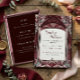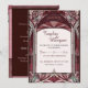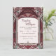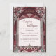 A stained-glass style wedding invitation, themed with colors of red and pink.
