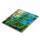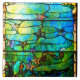 An art nouveau era stained glass window of starfish under the sea by tiffany. In colours of blue, teal, gold and brown. An elegant vintage design.