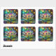 Stained Glass Vibrant Lotus Flower Square Sticker