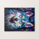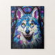 Stained Glass White, Blue and Purple Wolf Puzzle. Jigsaw Puzzle