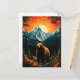 Stained Glass Wildlife Mountain Sunset Bear Announcement Postcard