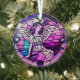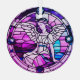 This cute glass ornament is made in the style of a stained glass window. Featuring a pretty angel in colourful tones of purple, lilac and pink. The perfect christmas gift for family, friends, work colleagues, neighbours and church | spiritual friends. Contains A.I.