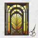 This stained glass design is an art nouveau-inspired pattern featuring intricate, generative art made up of geometric lines that create symmetrical patterns. The colours used in the pattern are primarily yellow and orange, giving the design a sense of depth and dimensionality. Rendered using state-of-the-art technology, this stained glass design is an intricate and beautiful pattern.