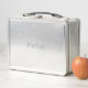 This Stainless Lunch Box is a grey colour. The name Peter is on the lunch box on the front and back. The name is in silver text. You can change the name with the Personalise button.