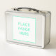 This is a standard metal lunchbox that appears to work just fine. We designed this box ourselves with an uploaded photo and custom text on the front and back. It looks absolutely beautiful except the front of the lunchbox is not centered like it shows in the photo. The print borders don't align with the inset flat part of the box where the preview photo online showed it perfectly centered in there. The back looks nice and centered though.