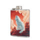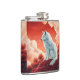 stainless steel flat man with mystical wolf hip flask