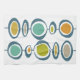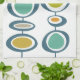 Add a pop of colour to your mid-century kitchen with this adorable retro kitchen towel. It features the bright and bold colours of turquoise, blue, orange, gold and tan.