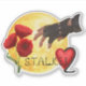 Bright sticker about Stalker 2, Ukrainian Game. You can see red flowers, moon and hand here. Painted with love.