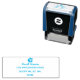 This self-inking stamp is shown in black and blue housing. Shown with a tropical light blue ink with a hibiscus flower at top. As always you can customise your colours, ink etc. Custom text lines for your title and address lines. Has crown at top. Customise this item or buy as shown.