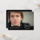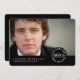 A simple and modern design that features your graduate's photo on the front with all the party or announcement details on the back. Classic white typography stamp design on a crisp black border at the bottom of the card creates a timeless and stylish invitation or announcement of your child's graduation celebration.