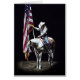 A gorgeous photograph of the cowgirl on a palomino & white Paint Horse holding the American Flag during the National Anthem at the 2014 Snake River Stampede.