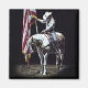A gorgeous photograph of the cowgirl on a palomino & white Paint Horse holding the American Flag during the National Anthem at the 2014 Snake River Stampede.