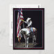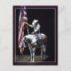A gorgeous photograph of the cowgirl on a palomino & white Paint Horse holding the American Flag during the National Anthem at the 2014 Snake River Stampede. With a red, white and blue border. Photography and design by Robin D. Cox.