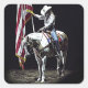 A gorgeous photograph of the cowgirl on a palomino & white Paint Horse holding the American Flag during the National Anthem at the 2014 Snake River Stampede.
