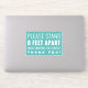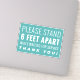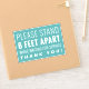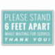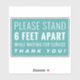 a sticker with the quote : " STAND 6 FEET APART WHILE WAITING FOR SERVICES "