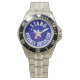 Has heft and feel of expensive stainless steel quartz watches. Good band with safety catch. I removed links, which is easy because engraved arrows show direction to push the linking pins. As always by this seller, the image (a railroad logo) is a perfect reproduction of my emailed image, and is precisely spaced and aligned.