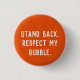 This button will encourage people to keep their distance. The bright orange colour will stand out like a deer hunter in the forest. If you don't want people breathing on you, this button is a must have accessory! This button was inspired by a recent trip to the grocery store where the bubble was NOT respected!