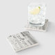 The coasters are gorgeous, a quality feel and heavy weight. They look like a precious archeological find. A rustic stone juxtaposed with a modern floral black and white print. I like the way the print goes slightly imperfect on the cut stone edges giving them a kind-of natural beauty.