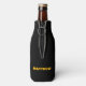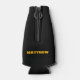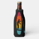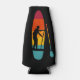Create a personalised gift that's perfect for stand up paddle boarders. This bottle sleeve or bottle wrap features an illustration of a SUP or stand up paddle board and paddle depicted in vibrant sunset colours with a silhouette illustration in black of someone paddle boarding. The graphic is set against a black background with a spot on the back side for adding a name in yellow lettering.