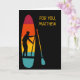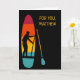 Create a personalised card for birthdays or any occasion. This greeting card is perfect for stand up paddle boarders. It features an illustration of a SUP or stand up paddle board and paddle depicted in vibrant sunset colours with a silhouette illustration in black of someone paddle boarding. The graphic is set against a black background. There's a spot to add your own message on the front and the inside of this card.