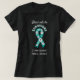A shirt with a teal ribbon witch stands for the symbol of sexual assault awareness. The text says, "stand with the survivors and stand against sexual assault."