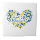 Folk art illustration heart and lettering in Ukrainian flag colours and ethnical pattern