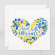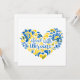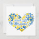 Folk art illustration heart and lettering in Ukrainian flag colours and ethnical pattern