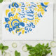 Folk art illustration heart and lettering in Ukrainian flag colours and ethnical pattern