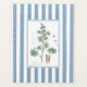 A grandmillenial blue planner featuring an antique botanical print with a watercolor striped border