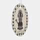 Cute, black standard Poodle with pink ribbons on ears. Adorable eyes and pink tongue out. Light beige tan background with paw print border on front. Customisable pet name underneath poodle. Back in beige tan with paw print pattern overlay.
