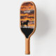 Standardbred Trotting Racehorse At Sunset, Pickleball Paddle. Digital Art. Silhouette of standardbred horse and driver jog at sunset. Fully customisable; make it your own. Edit the wording to your needs, or remove the text entirely.