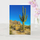 The photograph features a large multi-armed saguaro cactus by a hiking trail which leads towards a boulder strewn mountain in the Sonoran desert.