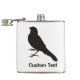 The flask itself is fine. It’s a cheap flask, obviously bought in bulk, however am prepared to overlook that. Given that it is a personalized item, I would have liked to have seen gift boxing instead of the generic packaging. Terrible printing, and/or quality. It’s a cheap, tacky vinyl. It is not cut straight and is also applied in a way that it is overhanging the bottom, causing the glue to catch on items and it will eventually roll and tear, damaging the wrap.
