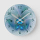 Standing Ovations, Abstract Blue Turquoise Fractal Round Clock