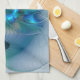 Standing Ovations, Abstract Blue Turquoise Fractal Tea Towel