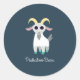 Stanley the goat is a Capricorn, which is perfect, because it's the sign of the goat. Stanley is alert and ready for anything, although sometimes all that energy can result in him being a bit obsessive. He loves to munch corn-on-the-cob—very neatly, of course—and his favourite "colour" is the wonderful patterns of plaid. Stanley stands proudly. He'll often pop his head over the fence to see what's going on.