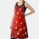 Simple and festive pattern of red and gold. Wavy lines with different shaped gold stars across a red gradient background. A cute design for the winter holiday time.