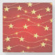 Star Adorned Ruby Red Pattern Stone Coaster