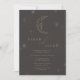 Designed with a sophisticated black background, metallic-style gold typography, and a mystical celestial moon and star illustration, this invitation sets the tone for a wedding that feels magical, romantic, and timeless. Ideal for cosmic weddings, starry night weddings, astrology weddings, boho celestial weddings, and moody modern wedding themes.