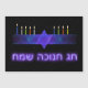 A purple and blue fractal image, with a Magen David (Star of David), in the middle, as a Chanukkah menorah. The candles have been lit. All on a starry background.