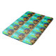 This is a lovely colourful bathroom mat, decorated with a tiled image of Star Fish, on a rock, against a turquoise background, with a Jelly Fish and green seaweed. It would brighten up any bathroom, and be ideal for a children's bathroom.