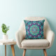 This throw pillow features a colourful star mandala pattern in turquoise, purple, teal and blue for a boho vibe.